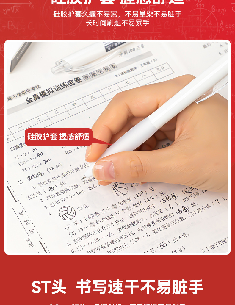 得力白ブラシ問題筆速乾st頭ペン先押し中性筆学生中学生文房具試験専用