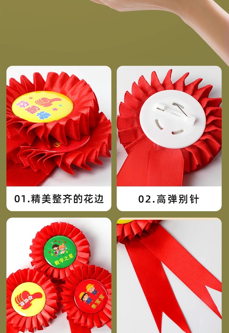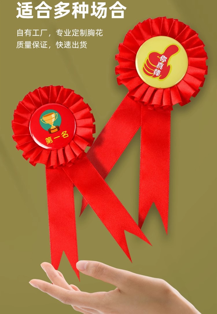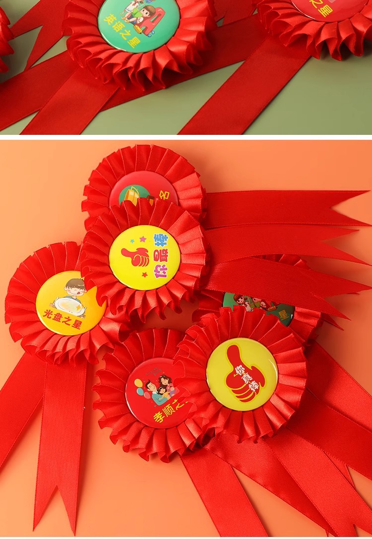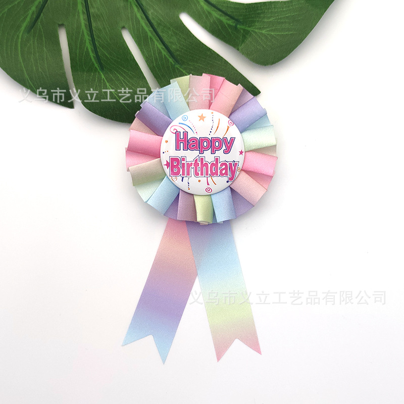 跨境专供彩色丝带胸花徽章儿童生日派对节日用品马口铁胸章定制