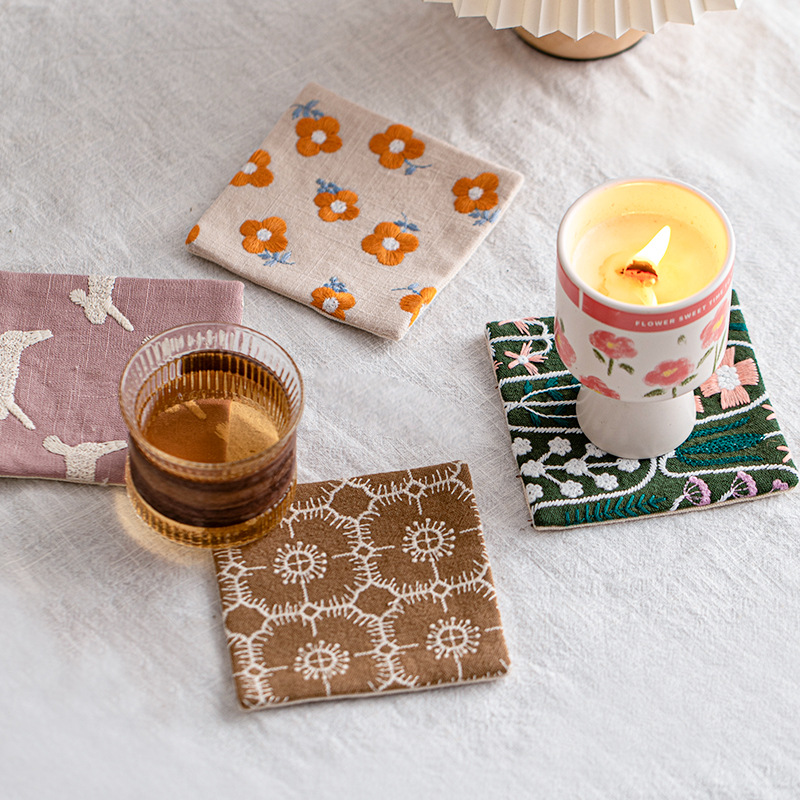 ins风刺绣杯垫布艺圣诞餐垫跨境吸水茶托创意咖啡杯垫碗垫隔热垫