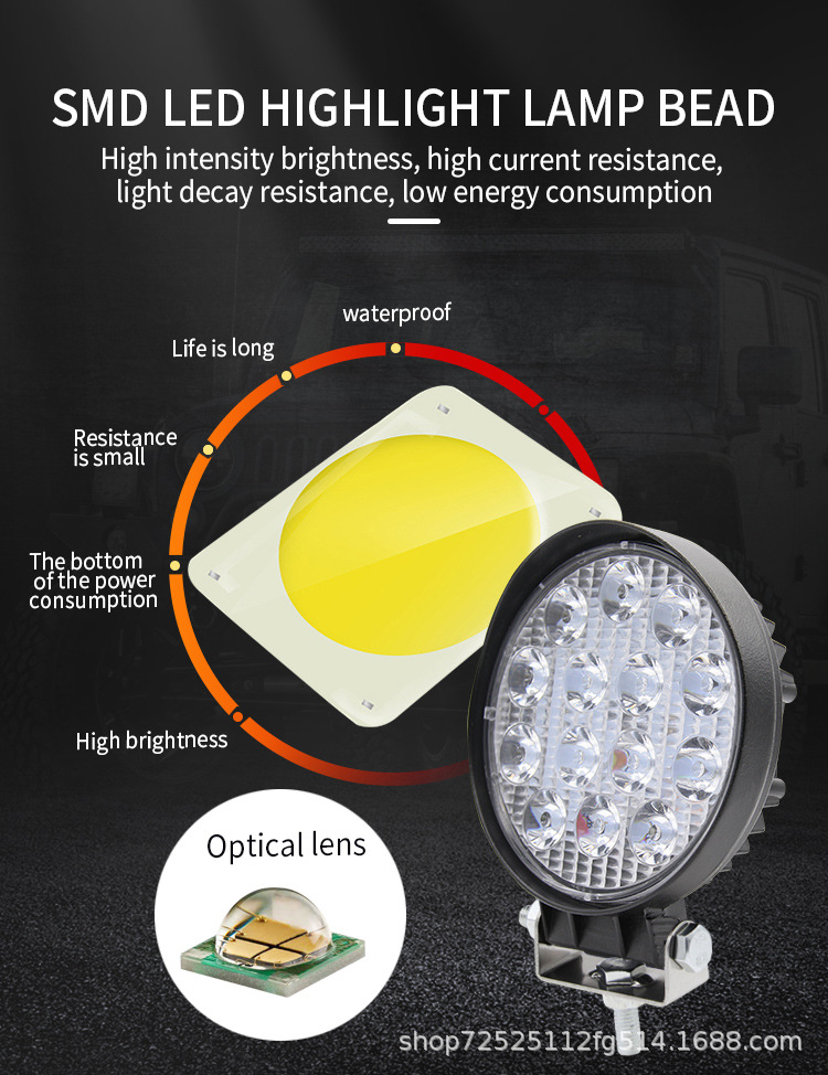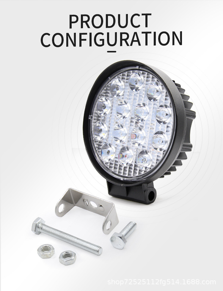 汽车led灯汽车灯4寸27w48w铝合大视野工作灯越野车射灯工程车雾灯