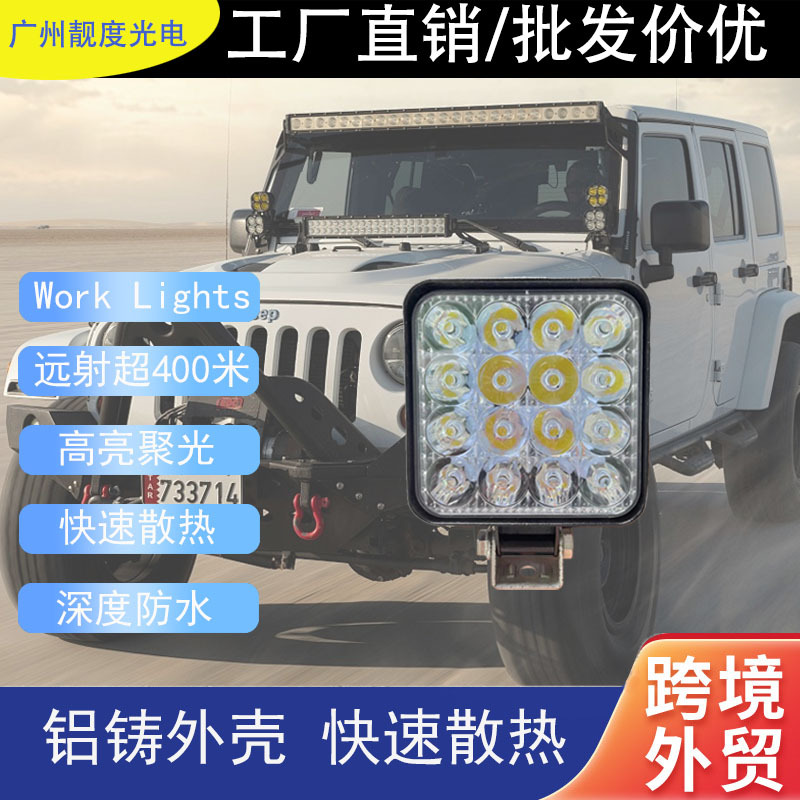 クロスボーダーled自動車作業灯16led角型48w工事灯点検灯オフロード車スポットライト