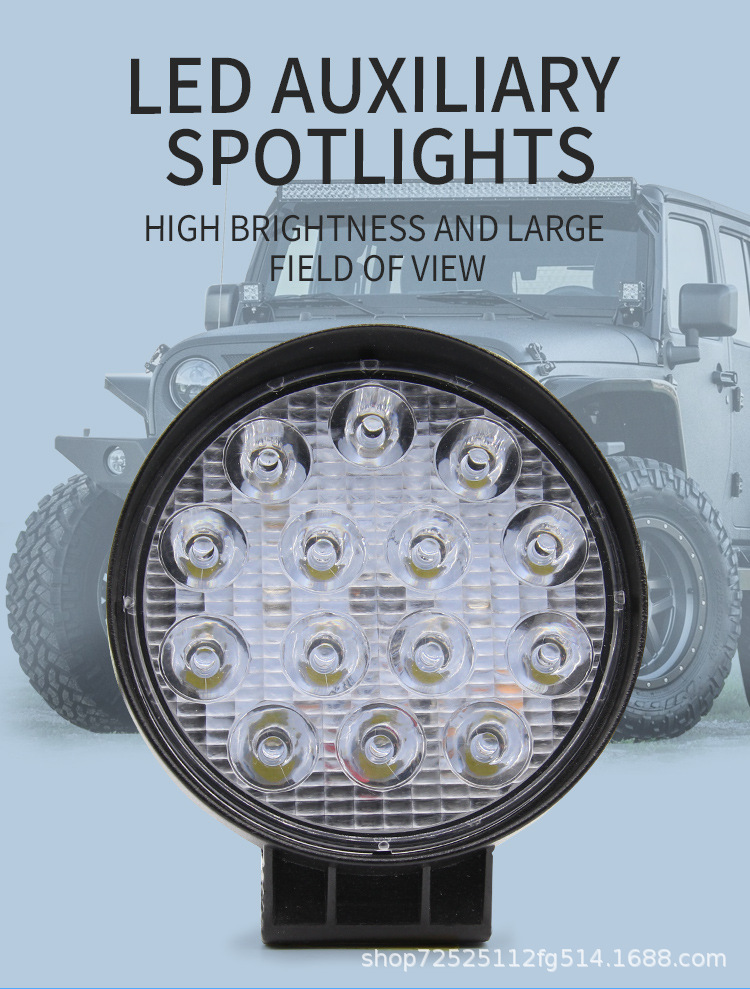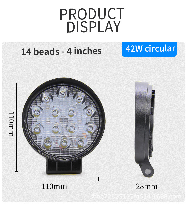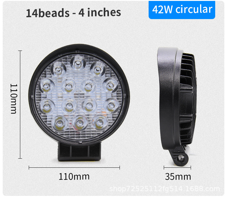 自動車LED作業灯円形14灯42W補助灯改造前照灯工事スポットライトヘッドライト