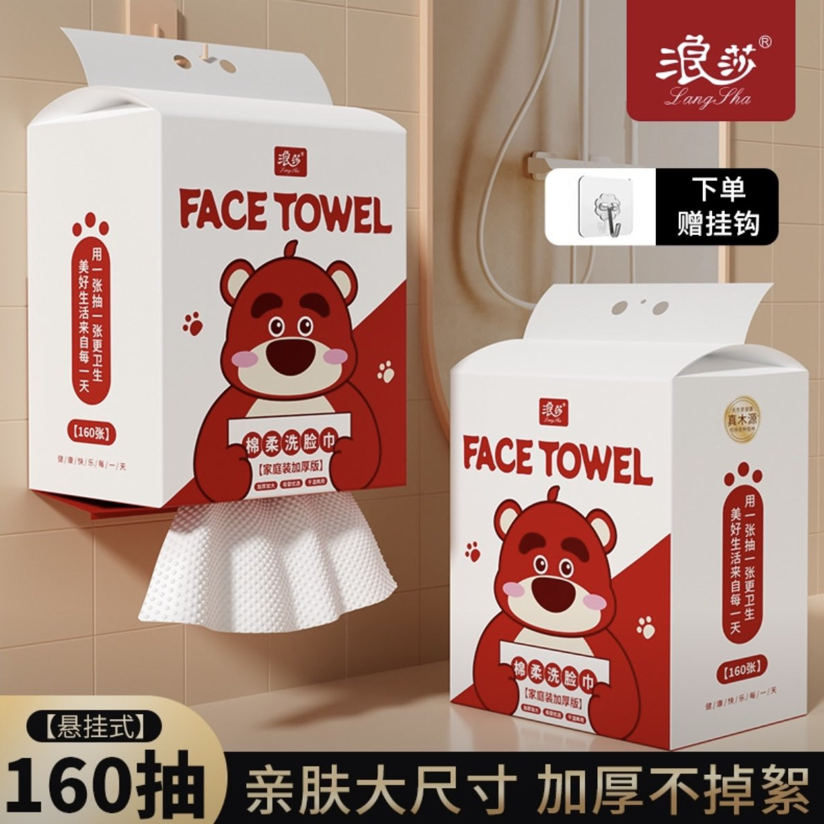浪莎悬挂式洗脸巾亲肤抽取式棉柔巾160抽实惠装【宋二胖】DH其他