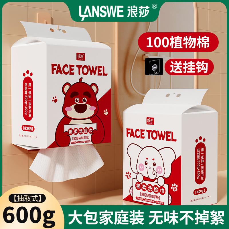 浪莎悬挂式洗脸巾一次性洗脸巾家庭大包装亲肤柔软加厚加大擦脸巾