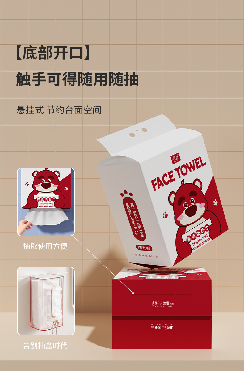 浪莎【正品】挂壁式洗脸巾抽取式棉柔巾干湿两用柔软洁面巾便携家