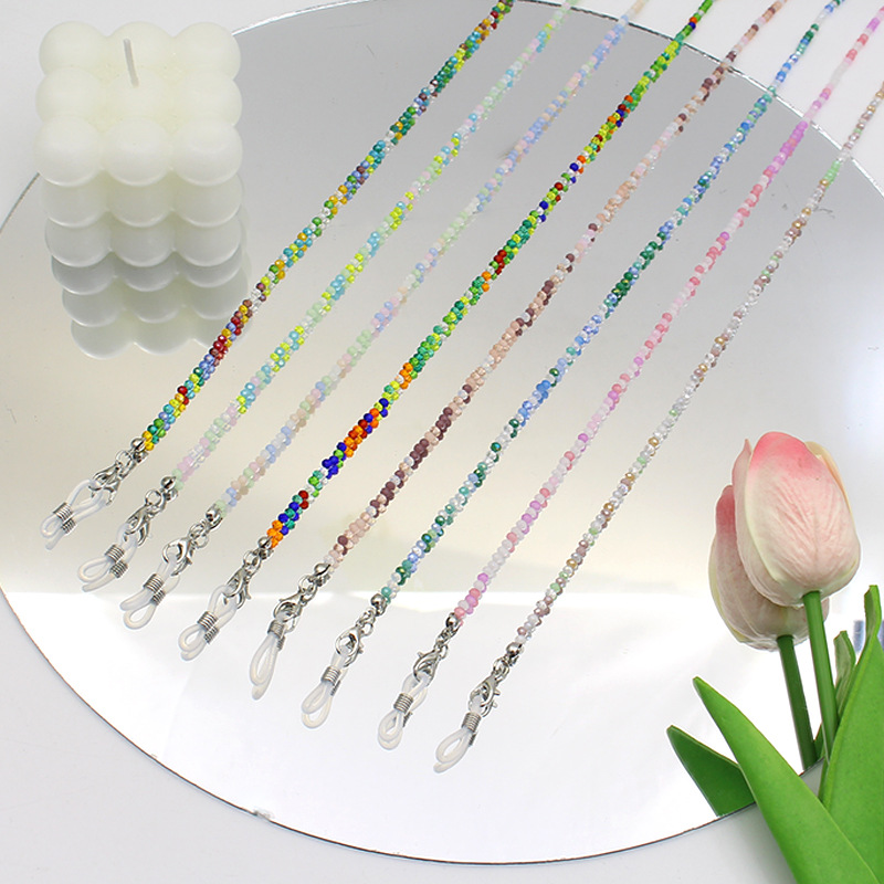 クロスボーダーカラーグラスチェーン、高級レディースライスビーズネックレス、ネットセレブレトロサングラス、サングラス吊りチェーン、マスクストラップ