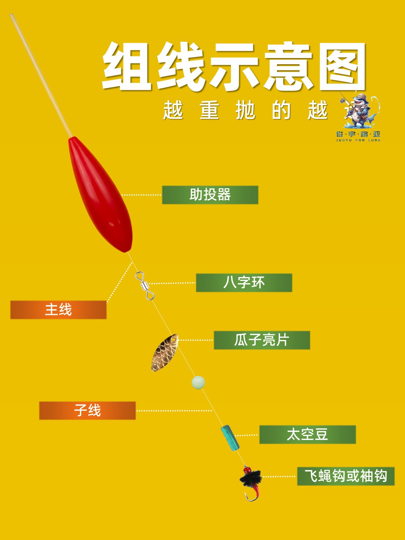 路亚风筝助投器浮水缓沉大克重远投串钩助抛器改装免穿线防缠绕线