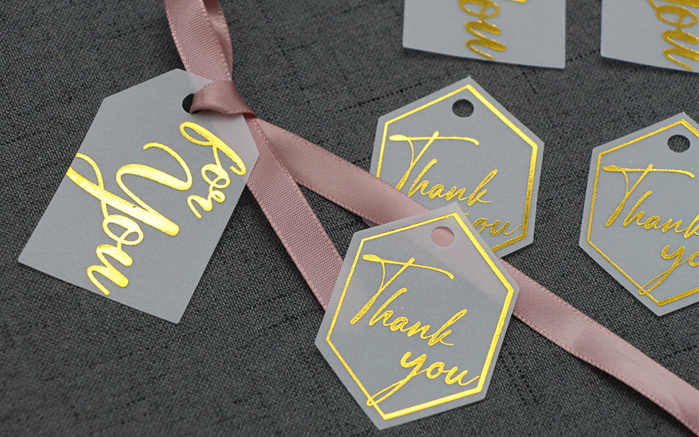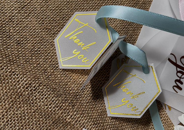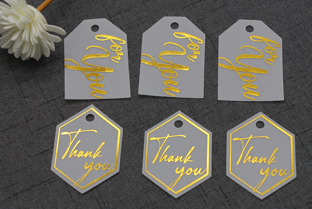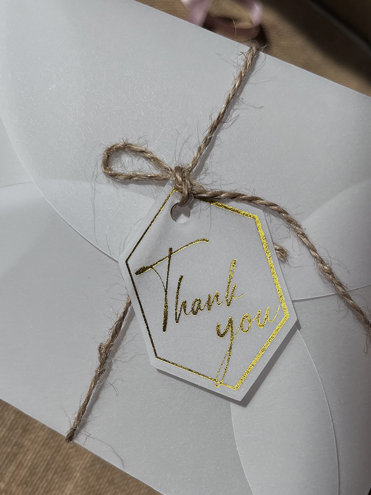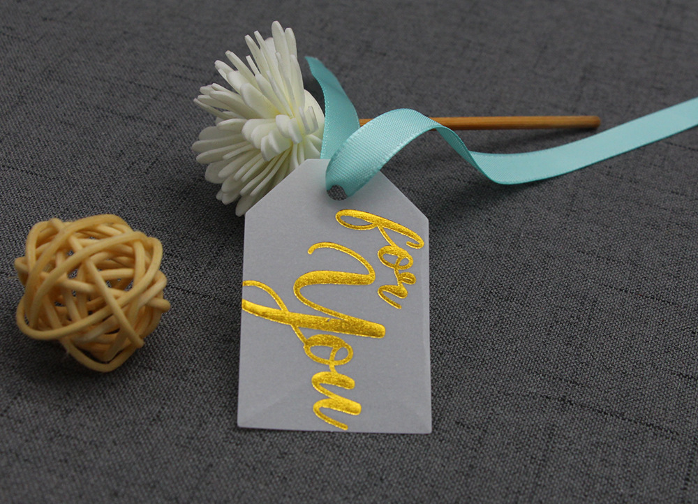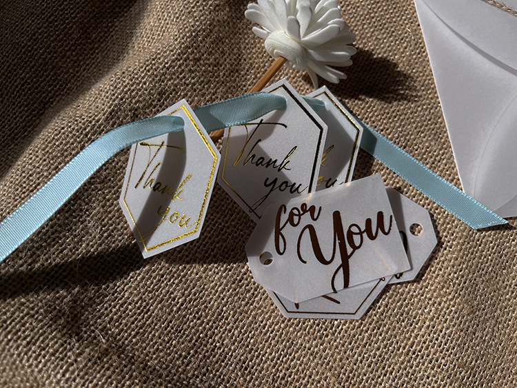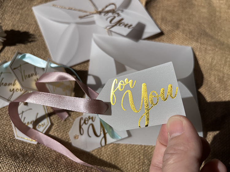 高級欧米の硫酸紙の半透明の結婚式のタグは金の韓風の招待状のキャンディーの箱のタグを掛けます。