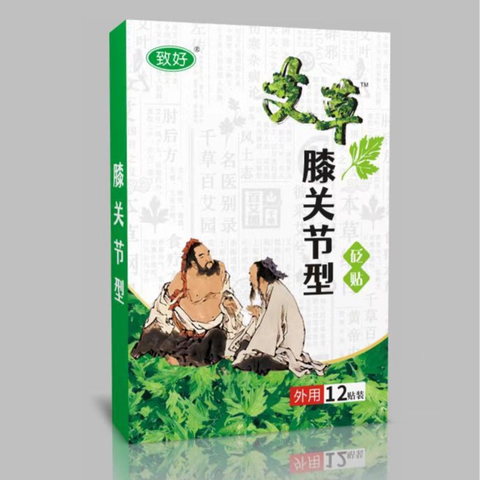 ヨモギの腰椎に肩首の膝のツボ型を貼って、ツボの圧力を刺激します。