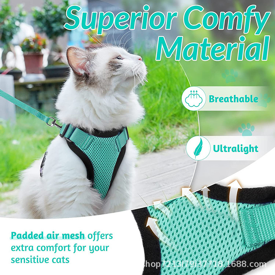 ペット用品猫通気性ハーネス反射抗脱走猫リード猫牽引ロープ小型犬ハーネス