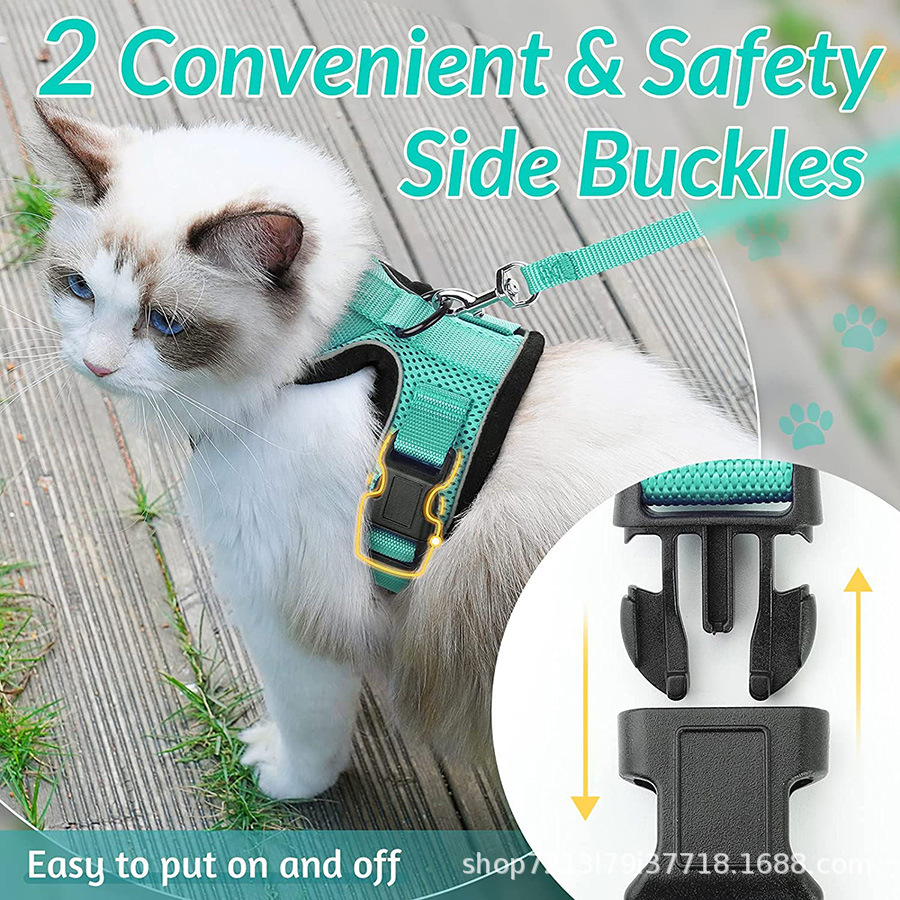 国境を越えたペット用品猫の通気性胸のストラップが反射的に猫のロープを散歩する猫の牽引ロープがストラップを調節できる