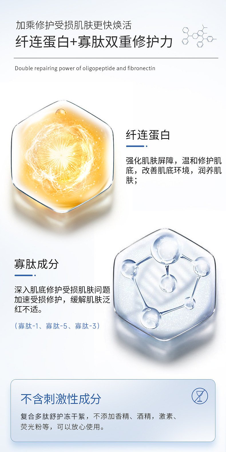 オリゴペプチド・フィブロネクチン凍結乾燥粉末キット8wは、修復活性を活性化し、水分補給、保湿、ニキビ除去、美白、抗酸化効果があります。