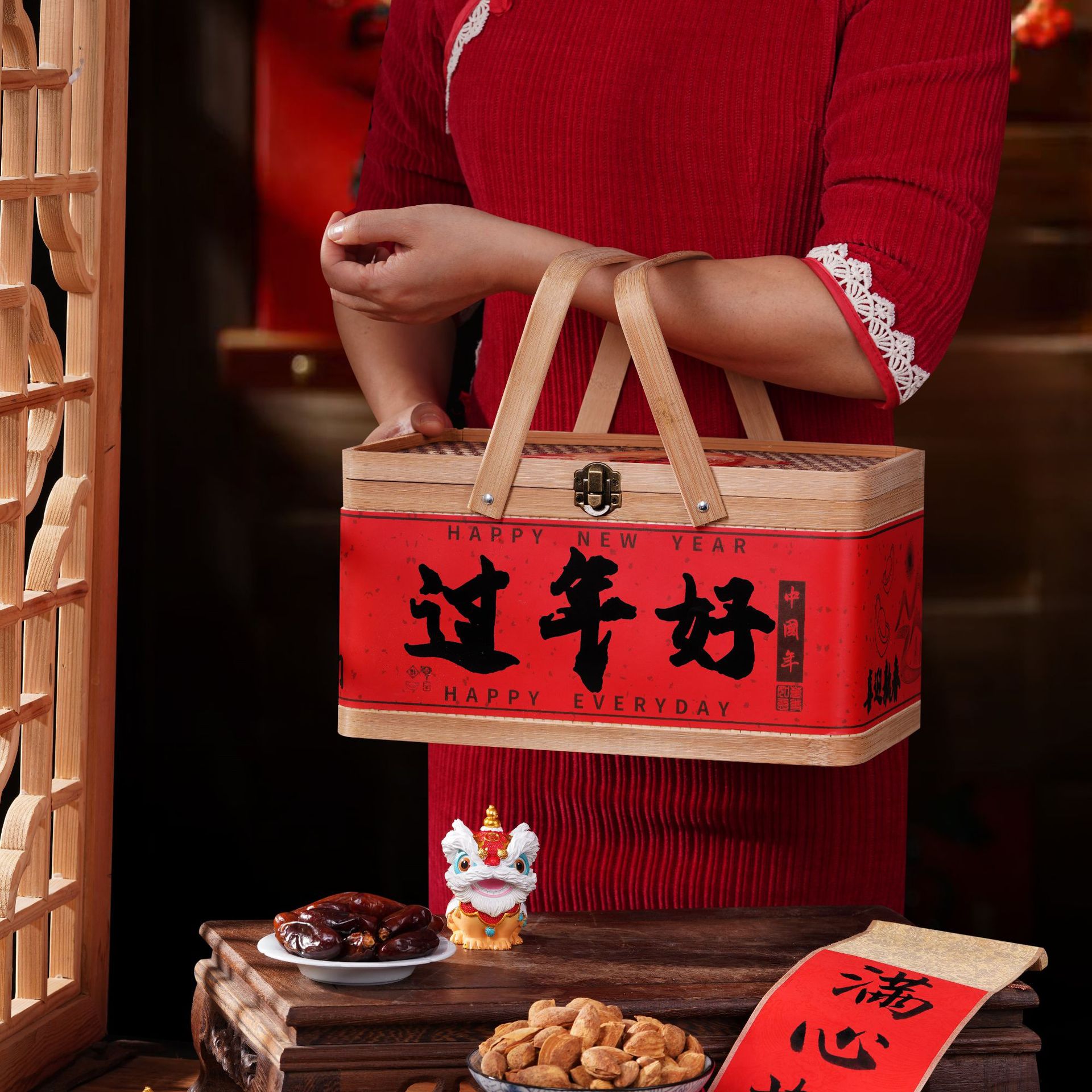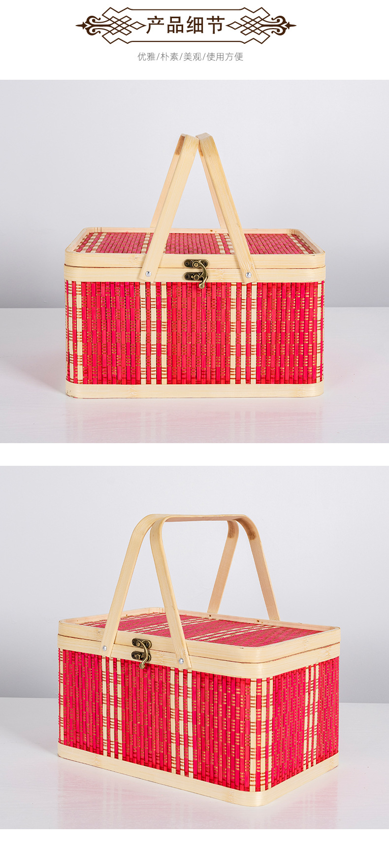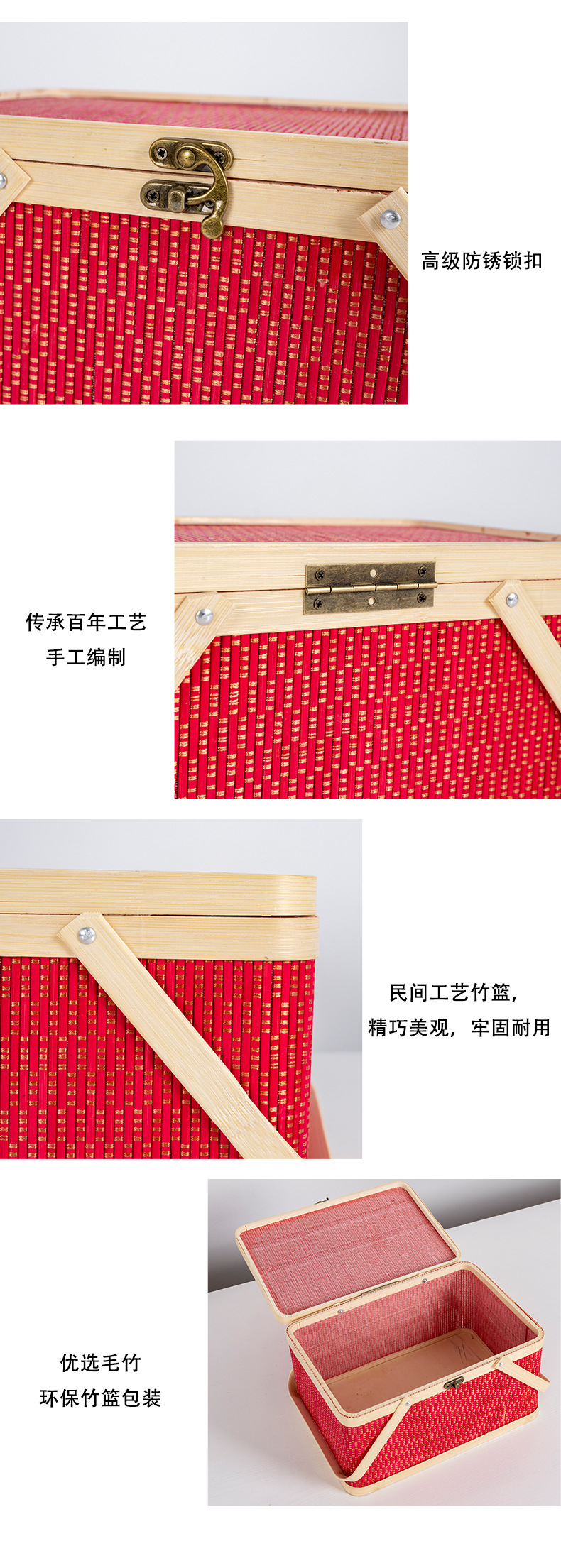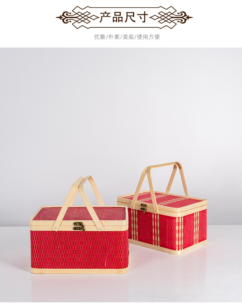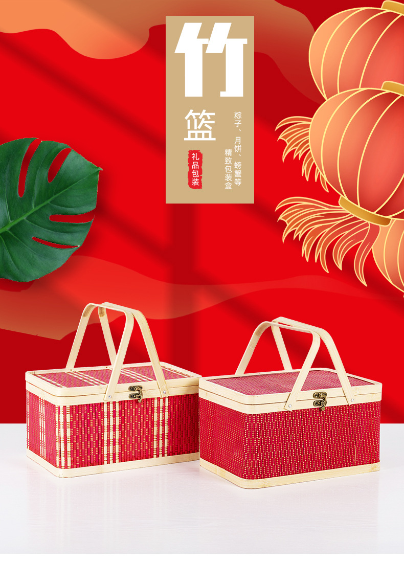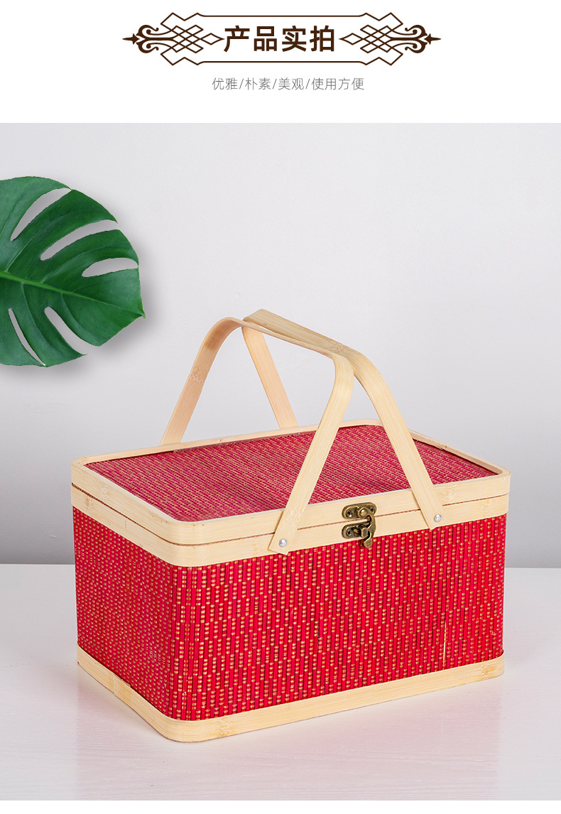 竹編み新年ギフトボックス、竹かご、正月用品、中国風包装、竹かご、菓子、特産品、手提げ竹箱、編みかご