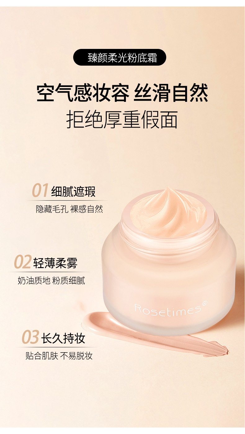 Rosetimes臻颜柔光粉底霜防水防汗不脱妆遮瑕保湿学生平价粉底液