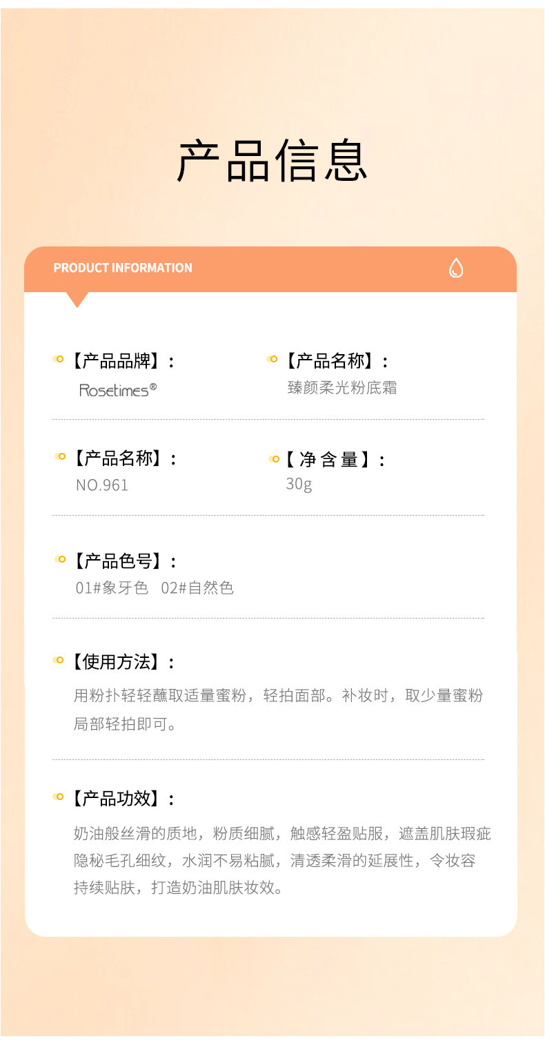 Rosetimes柔光美肌ファンデーション30g潤い服帖クリーム肌ファンデーションファンデーションクリーム代発