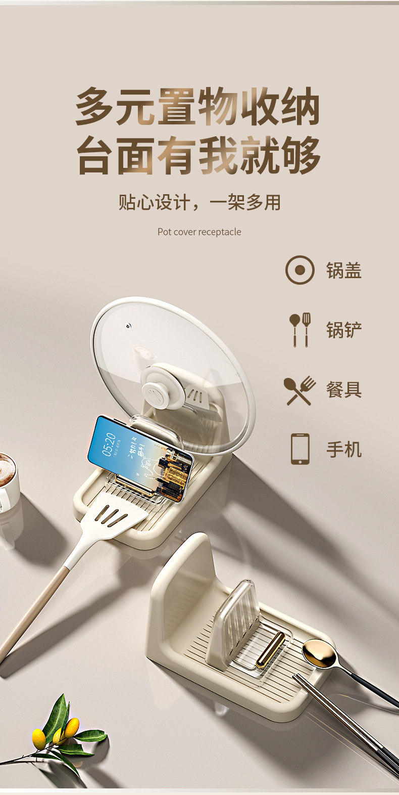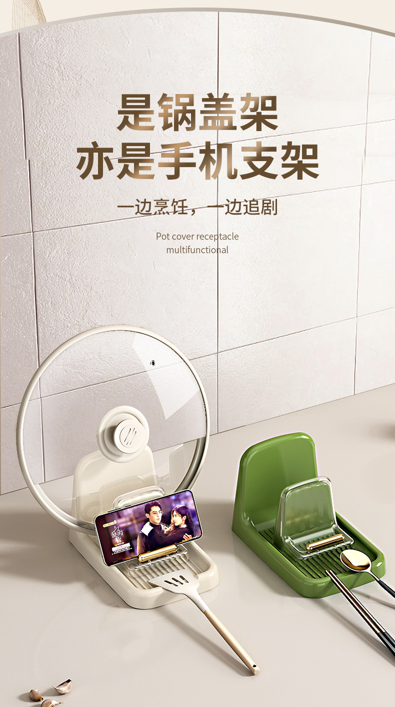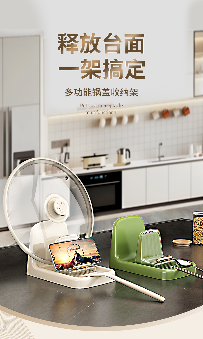 家用多功能锅盖架厨房桌面锅铲汤勺收纳垫托欧式简约沥水置物架