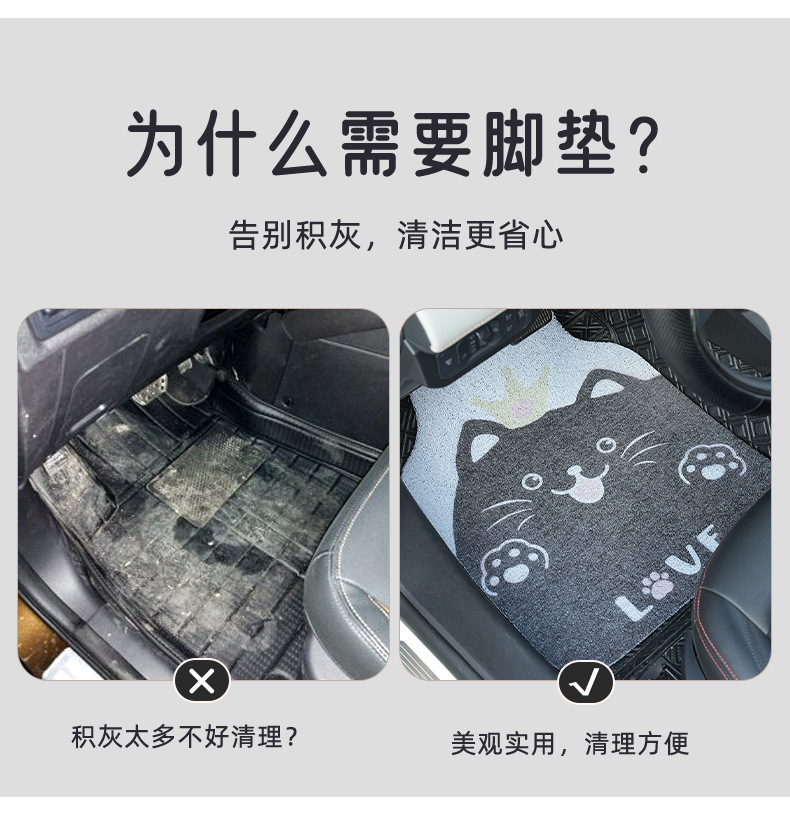 シルクの車の足のマットが可愛いです。猫の車は汚れ防止の滑り止めの足のマットを使います。
