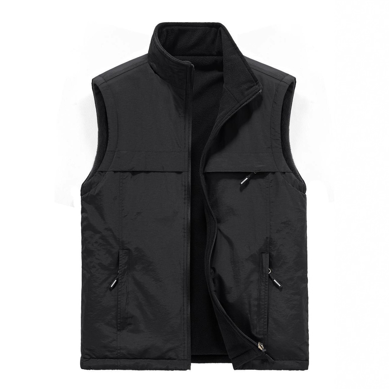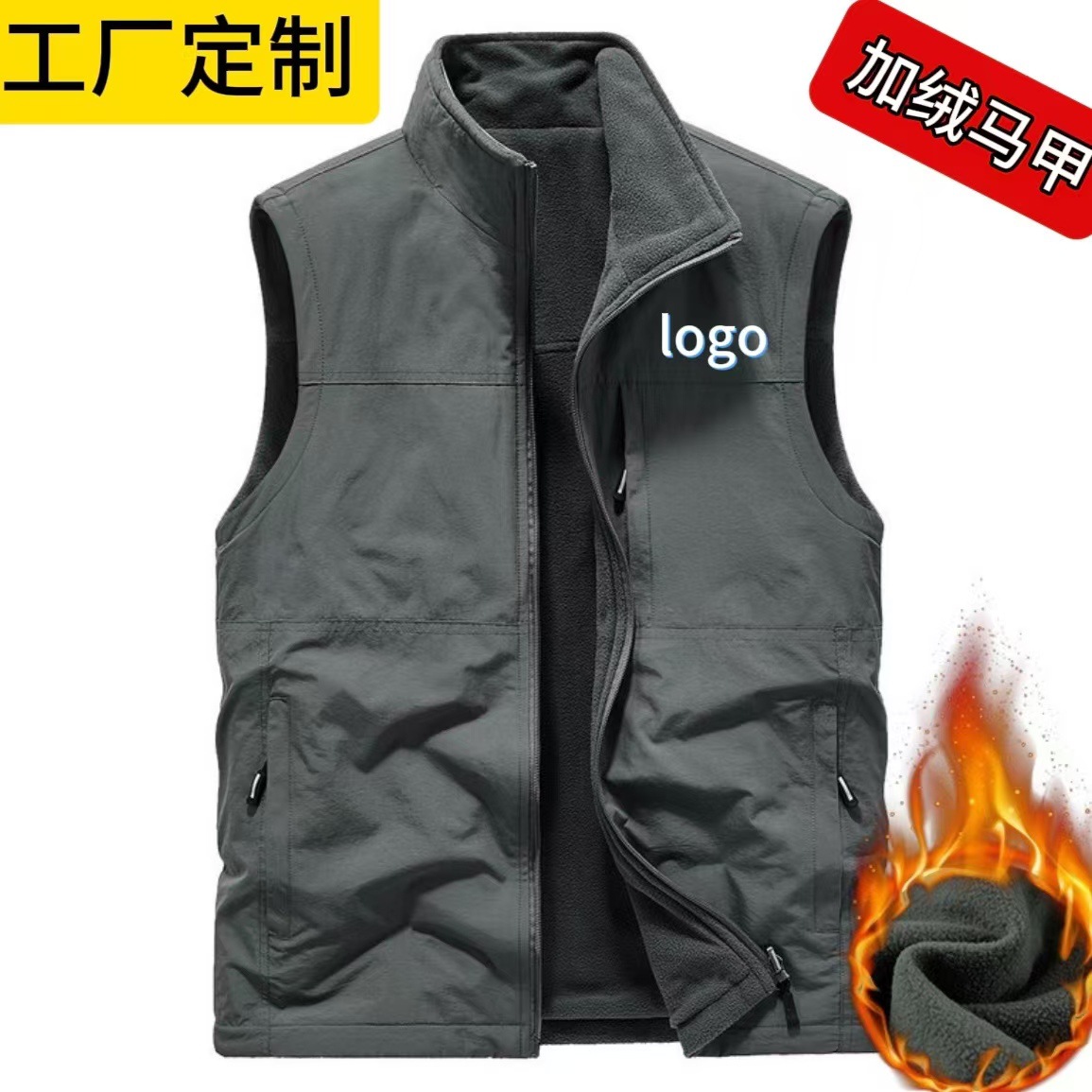 工作服马甲定制印LOGO装饰志愿者活动三口袋双层复合反光背心批发立领双面穿棉马甲可绣印LOGO青年休闲工作马夹坎肩加绒马甲