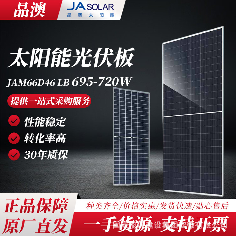 晶澳太阳能光伏板720W黑边框n型双面双玻光伏组件光伏发电板批发