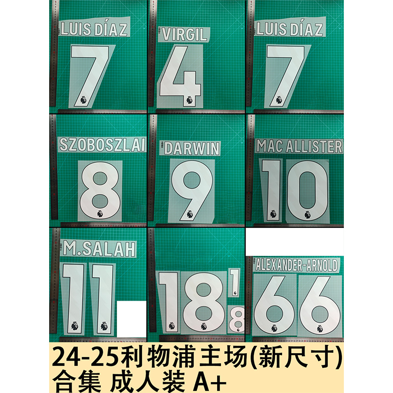 24-26 リバプール ホーム(新サイズ23CM)コレクション 大人用 A+ ジャージ番号 レタープリント 熱転写番号