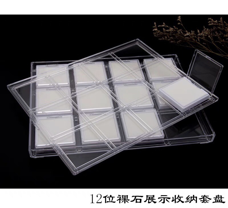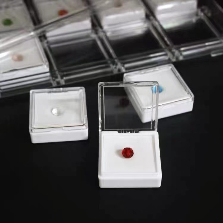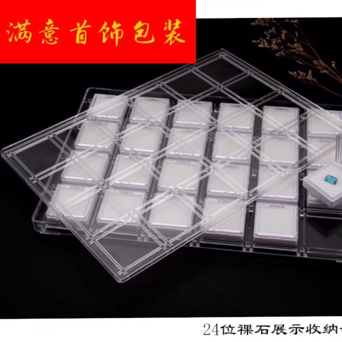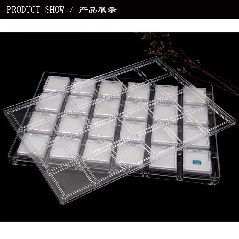 裸石盒亚克力方形塑料珠宝戒面盘展示PU皮托盘彩宝盒子样品盒收纳