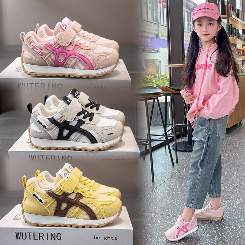 男女の子供の運動靴2024春秋の新型の柔らかい底の滑り止めのファッションの百合の中で大きい子供のレジャーの快適な靴