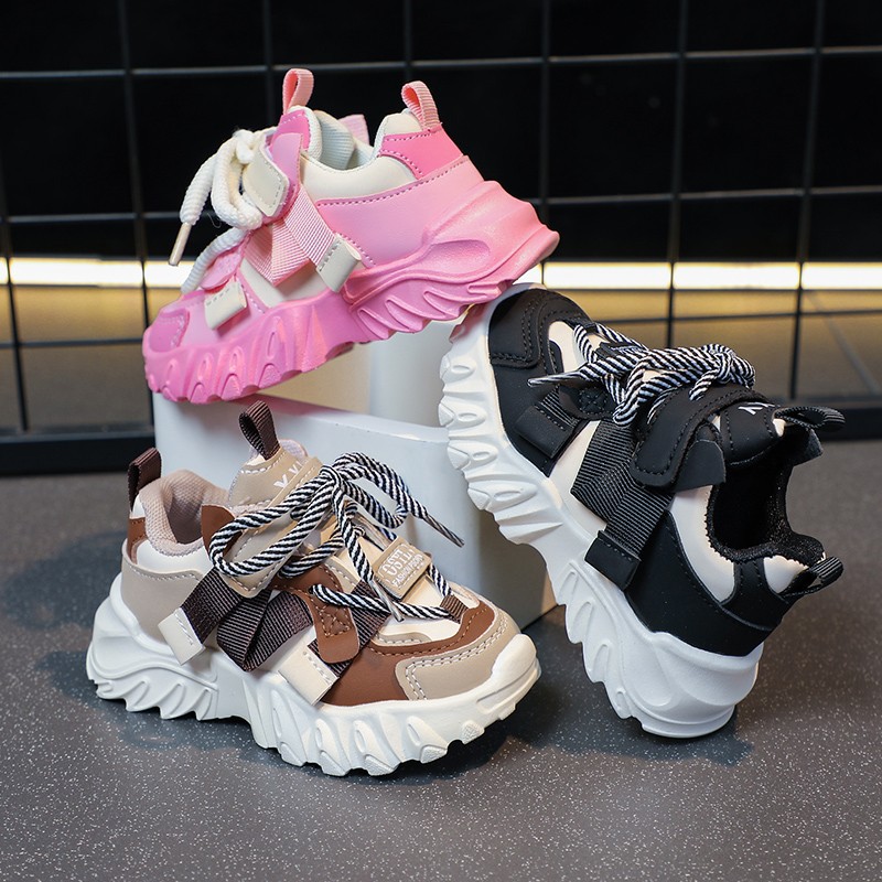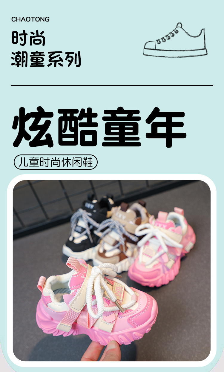 子供用スポーツシューズ 2025 秋の新作パンシューズ トレンディなダッドシューズ 男の子と女の子向けのファッショナブルなランニングシューズ