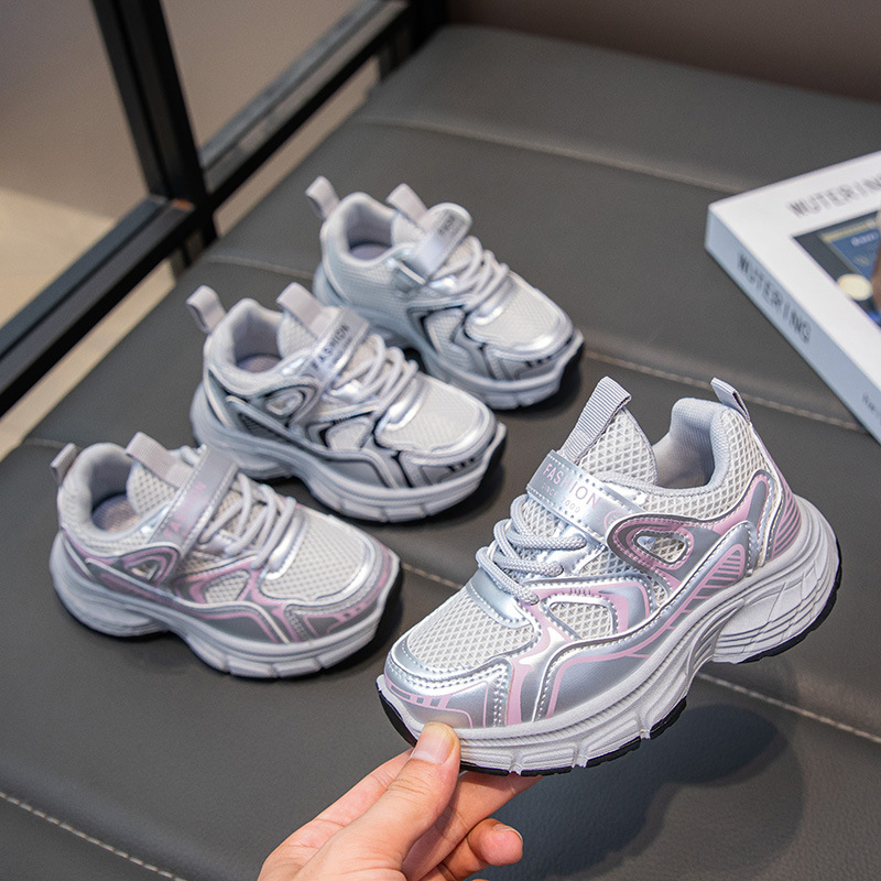 男の子と女の子のためのメッシュスポーツシューズ2025秋の新しいファッションソフトソール滑り止め通気性中型および大型子供用多用途お父さん靴