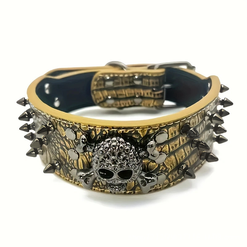 ハロウィン ブラック スカル リベット ペット首輪 噛みつき防止 犬用チェーン 中型および大型 PU 犬用首輪 Amazon ベストセラー