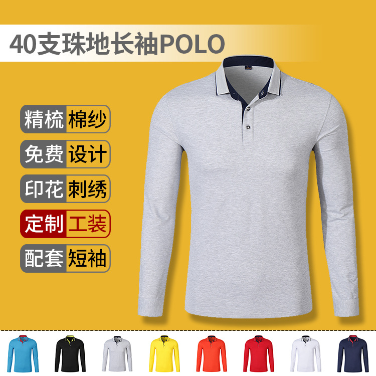 40本の珠地男女poloシャツ長袖秋工装ビジネスカジュアル襟tシャツ刺繍カスタムロゴ