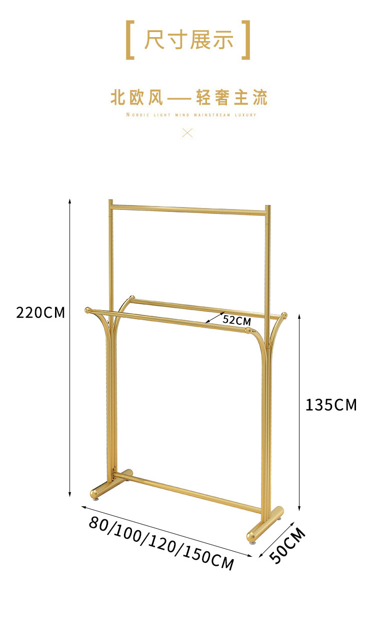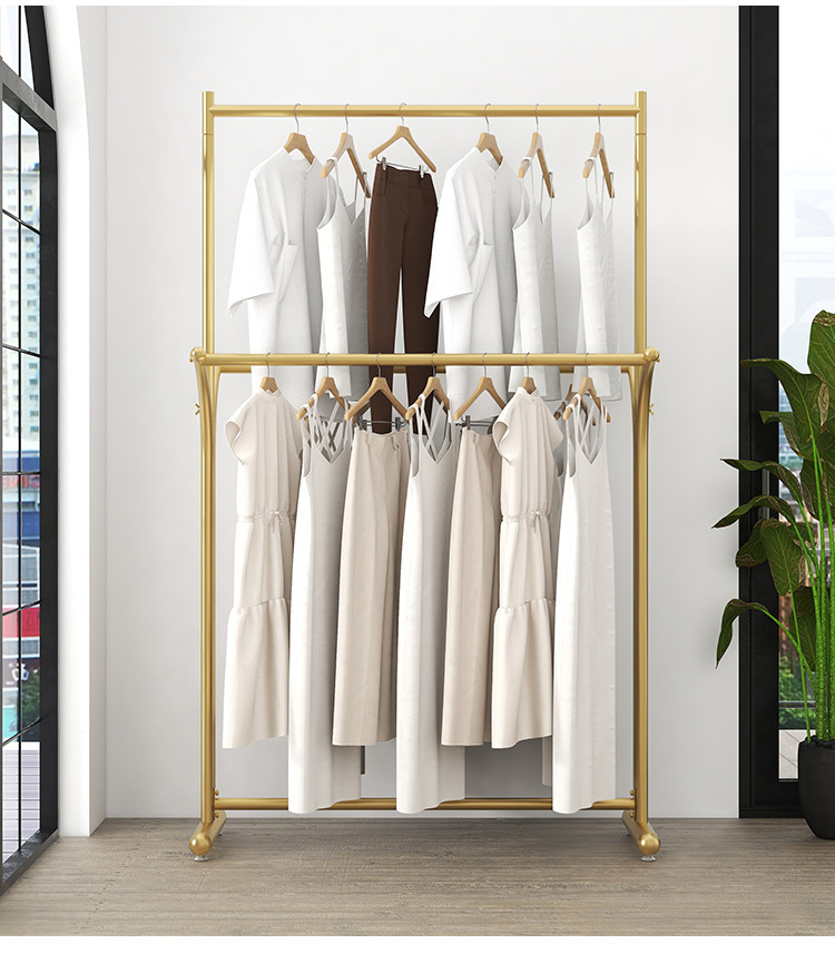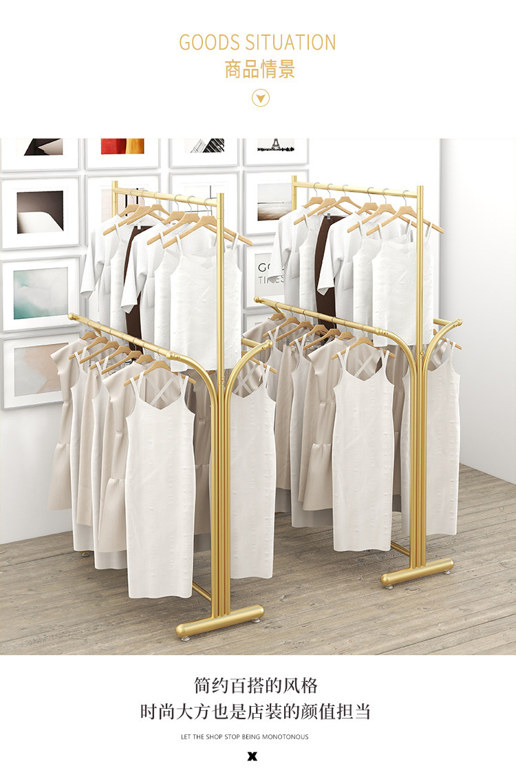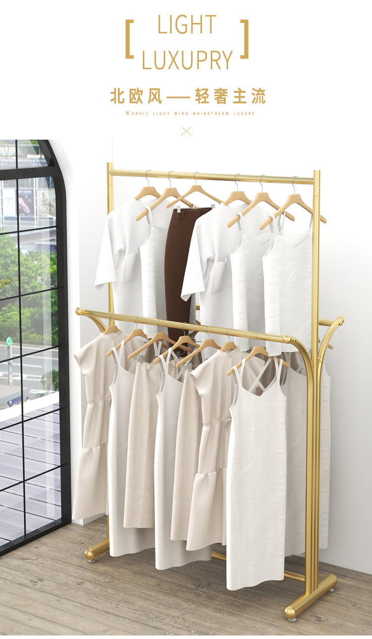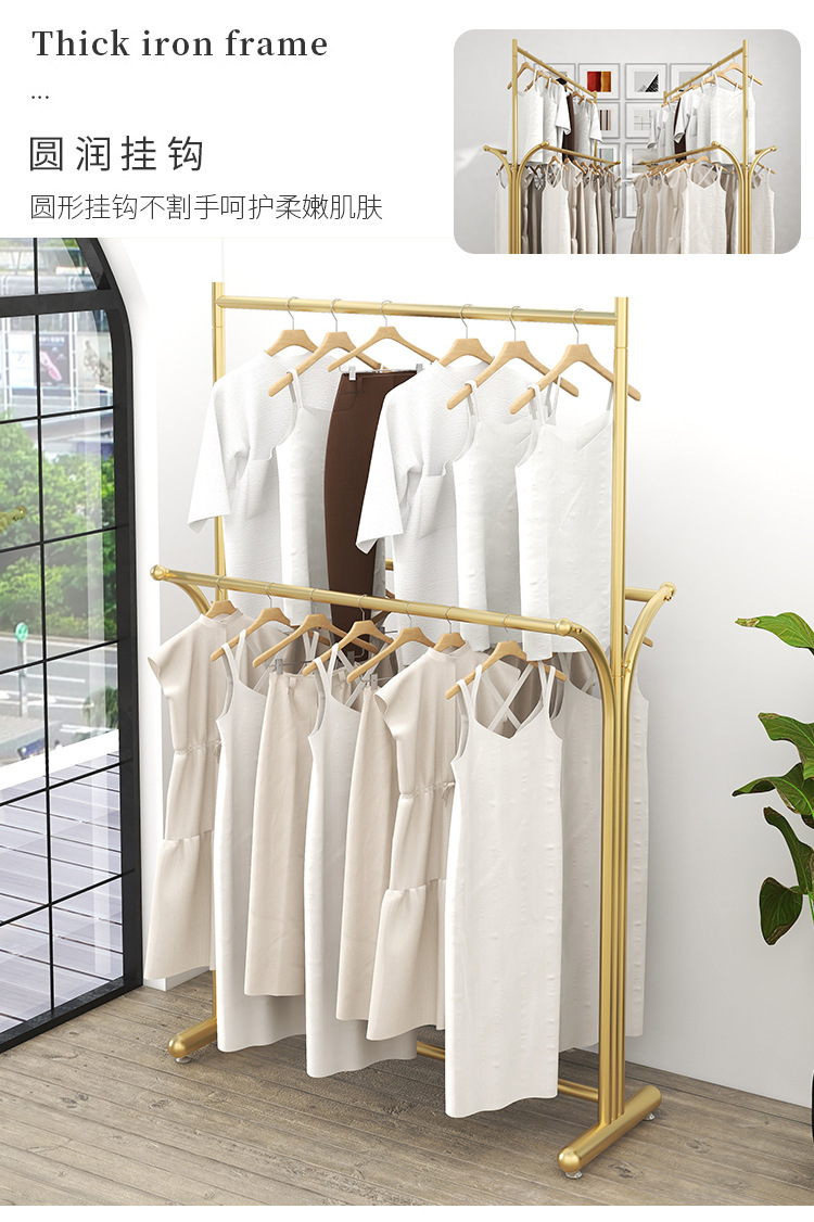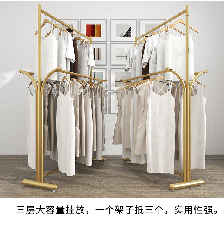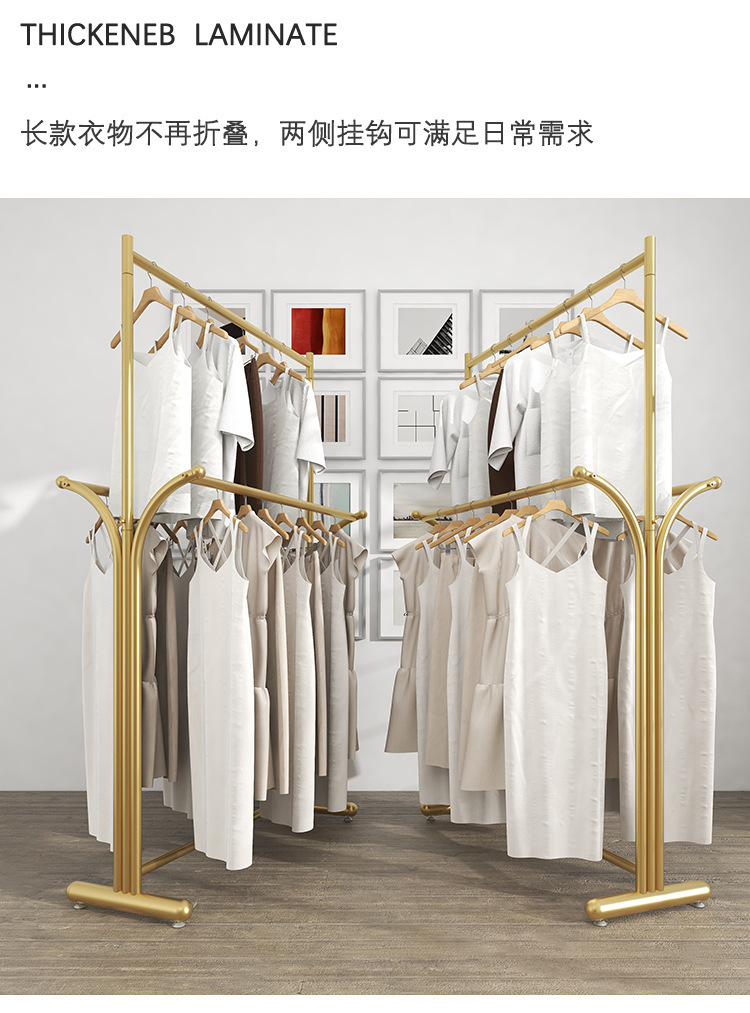 ゴールデン衣料品店中島二列ディスプレイラックライト高級洋服ラック折りたたみ床置き二層バルコニー乾燥ロッカーラック