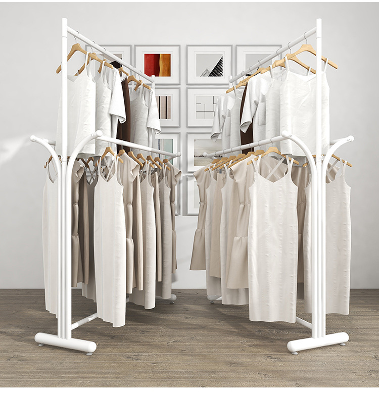 衣料品店ディスプレイラックモバイルアイランド棚婦人服店洋服ハンガー床置き横吊り洋服ハンガー大胆な床置き