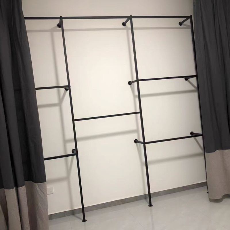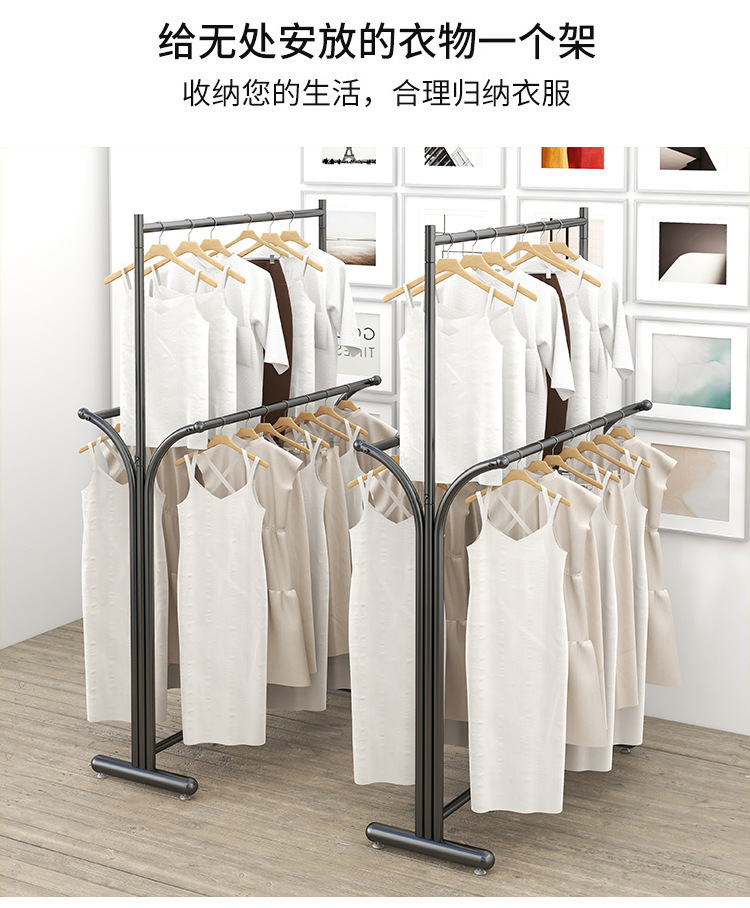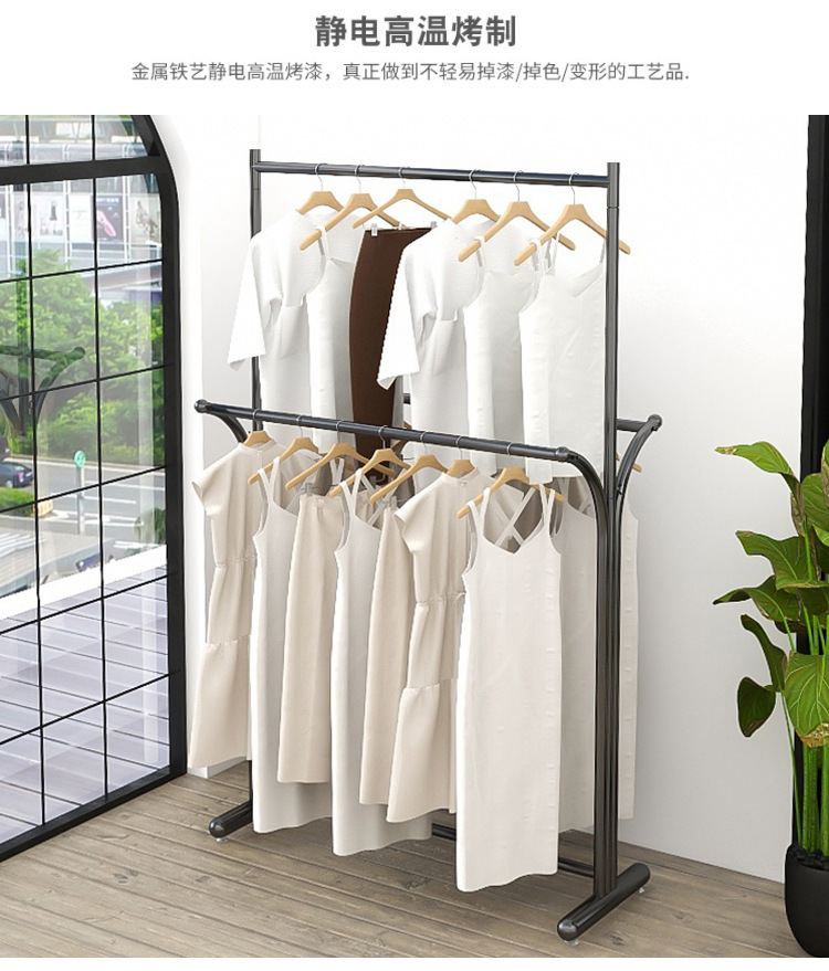 上墙壁挂式挂衣服架子服装店展示架双层挂衣杆家用卧室金属衣帽架