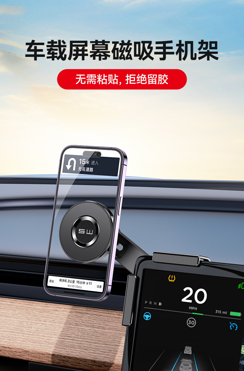 テスラ携帯電話車載スタンドmodelyスクリーンマグネット/3熙新版アクセサリーナビゲーション専用携帯電話スタンド