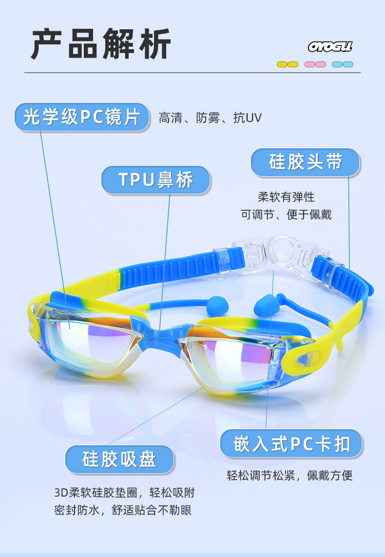 メーカー直販児童水泳鏡中小児童防水防霧ハイビジョン赤ちゃん訓練学水泳ひも付き耳栓付き眼鏡
