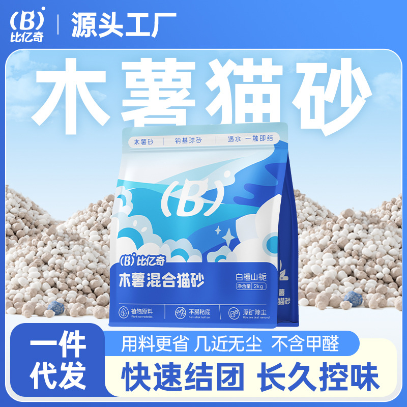 比亿奇木薯猫砂 豆腐混合砂20斤猫舍无尘除臭净味可冲厕厂家直销
