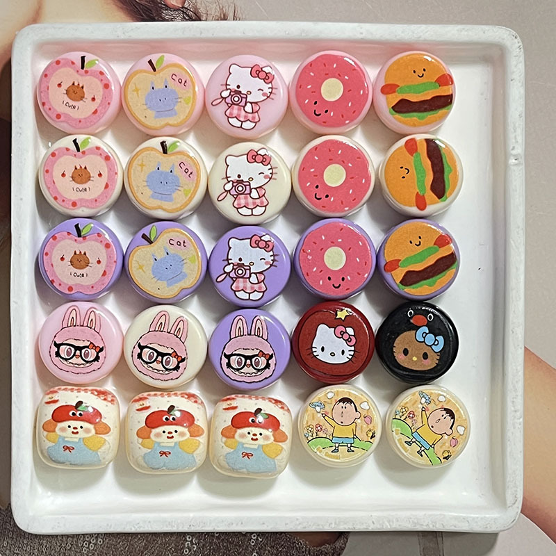 亚克力直孔小圆饼双面印刷涂鸦卡通 diy散珠串珠手机链钥匙扣配件