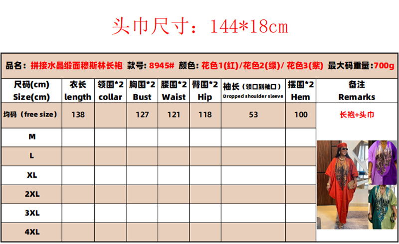 アフリカ、ヨーロッパ、アメリカ向けのクロスボーダーワンピース、シフォン生地、重厚な刺繍とラインストーン付きロングドレス、中東風半袖婦人服8623