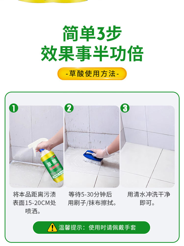 高浓度草酸清洁剂强力厕所污垢瓷砖水泥地板砖马桶洁厕灵去污水垢