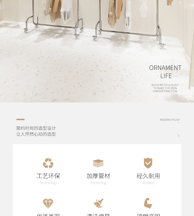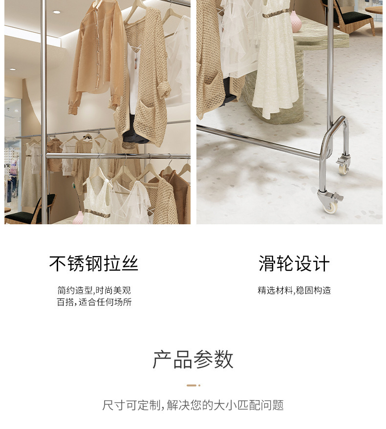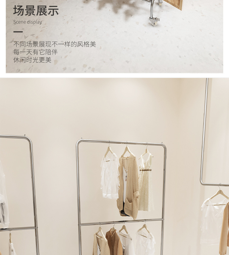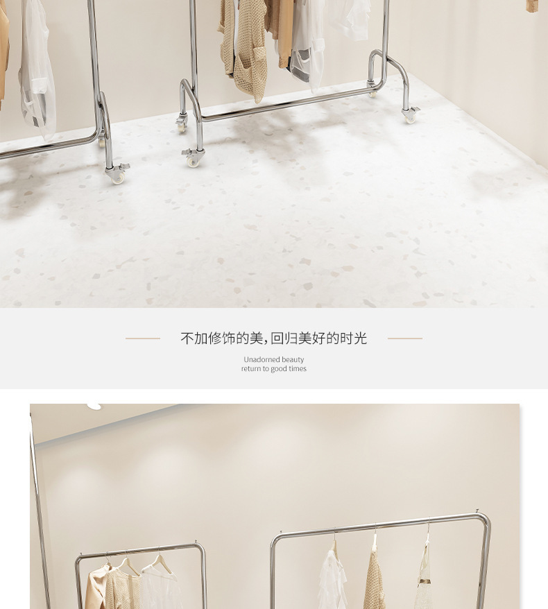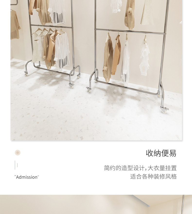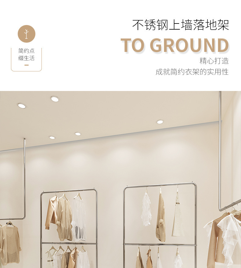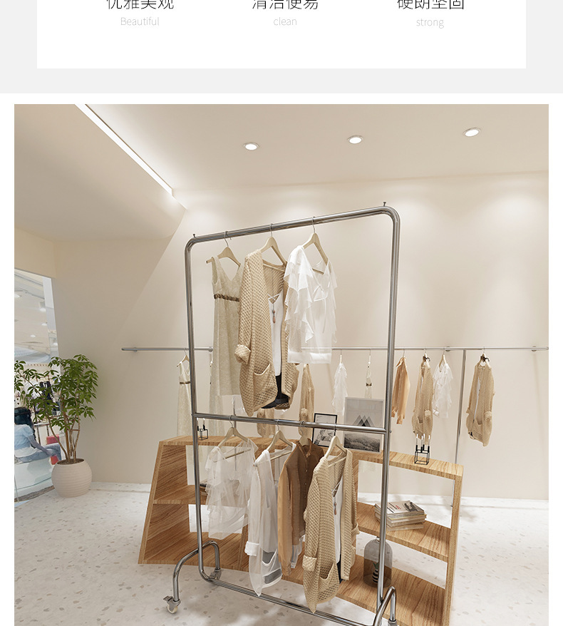 ステンレスハンガー洋服店展示棚着地婦人服店移動棚買手店服陳列棚