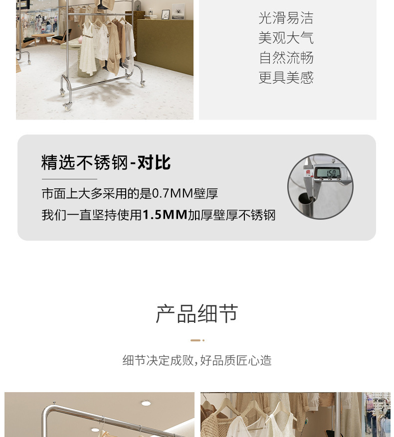 亮银加厚升级承重双层落地衣帽架晾衣杆可调节服装店晾衣展示架