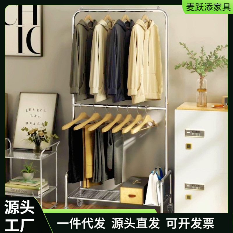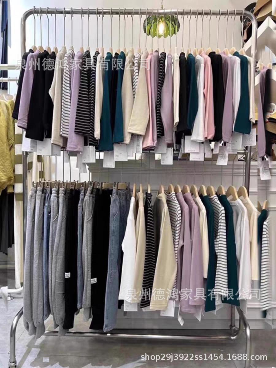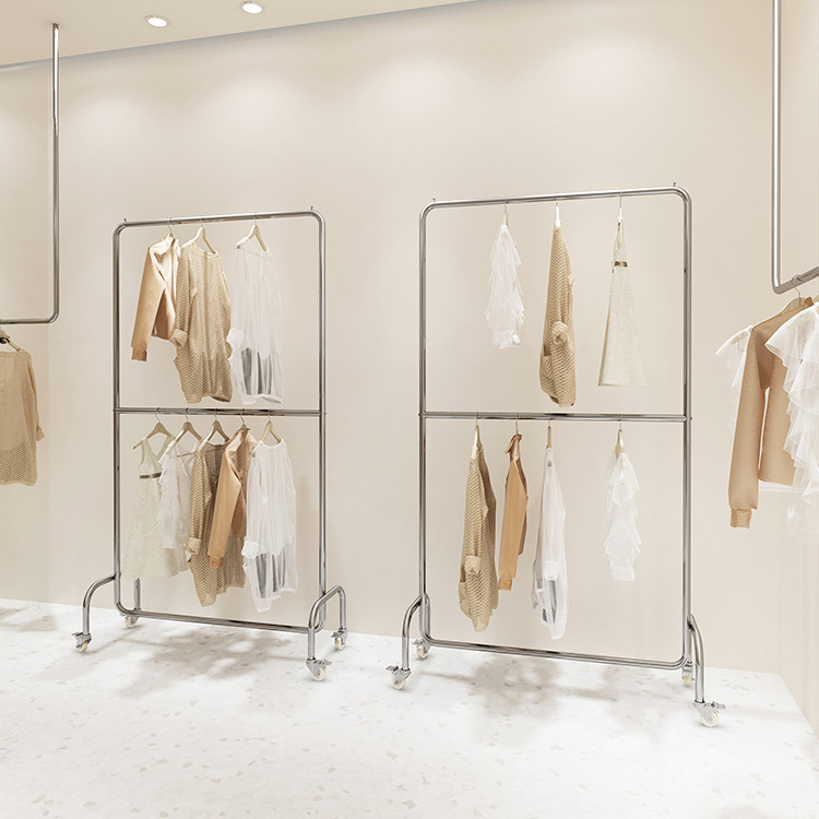 ステンレス二重服装棚床ハンガー婦人服店専用陳列棚移動服装展示棚