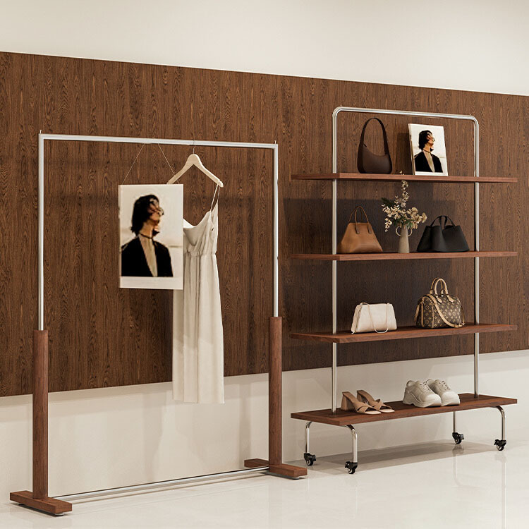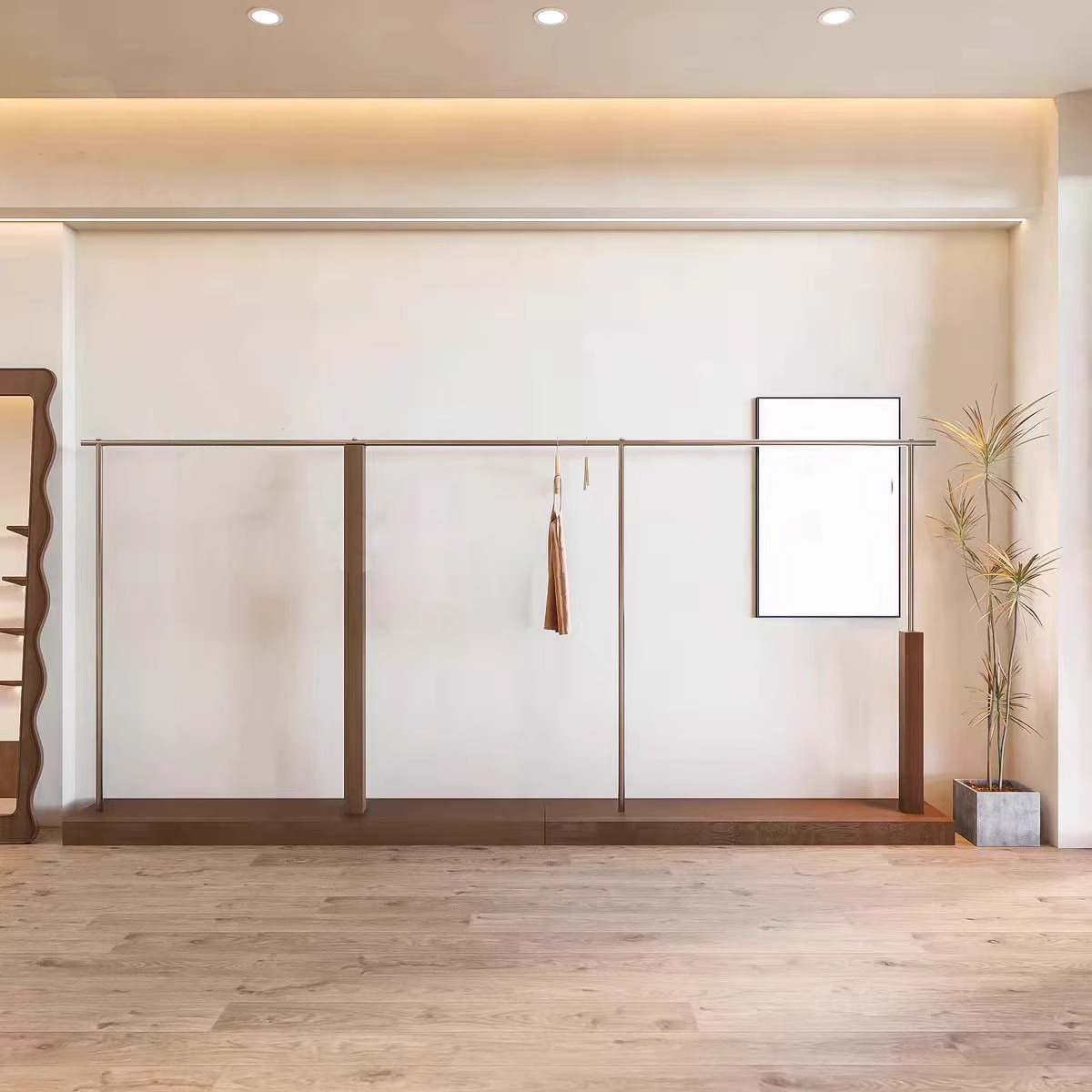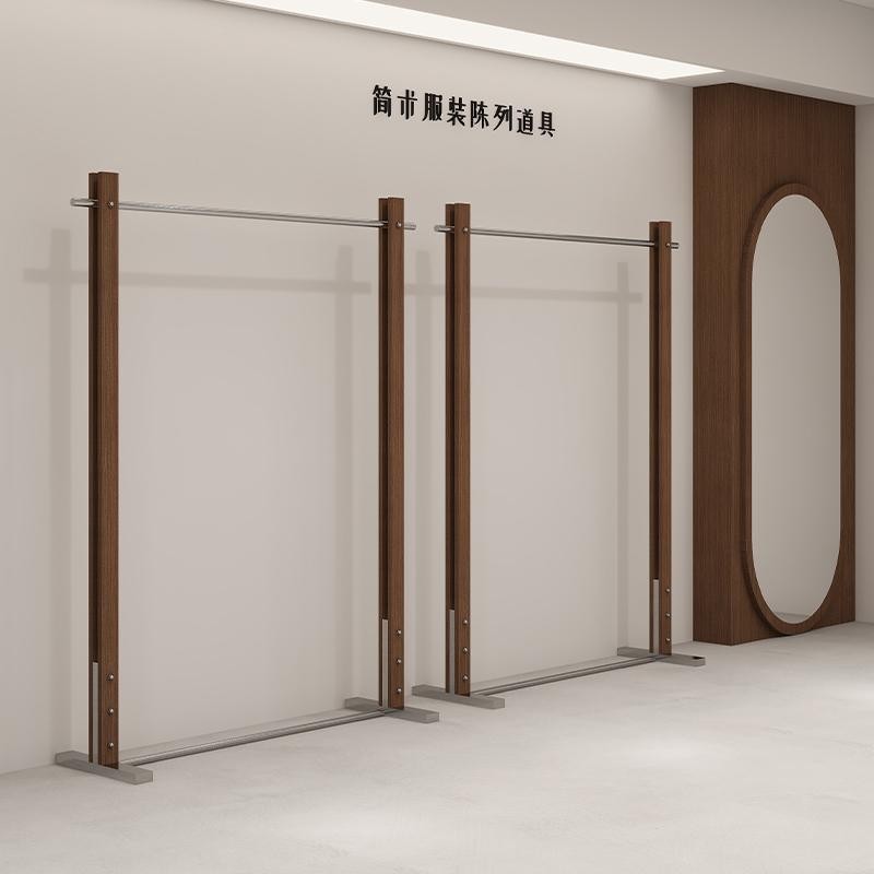 洋服店中島展示棚婦人服店ステンレスハンガー販売服陳列棚床置き式実木棚