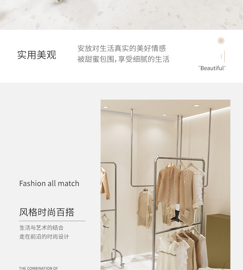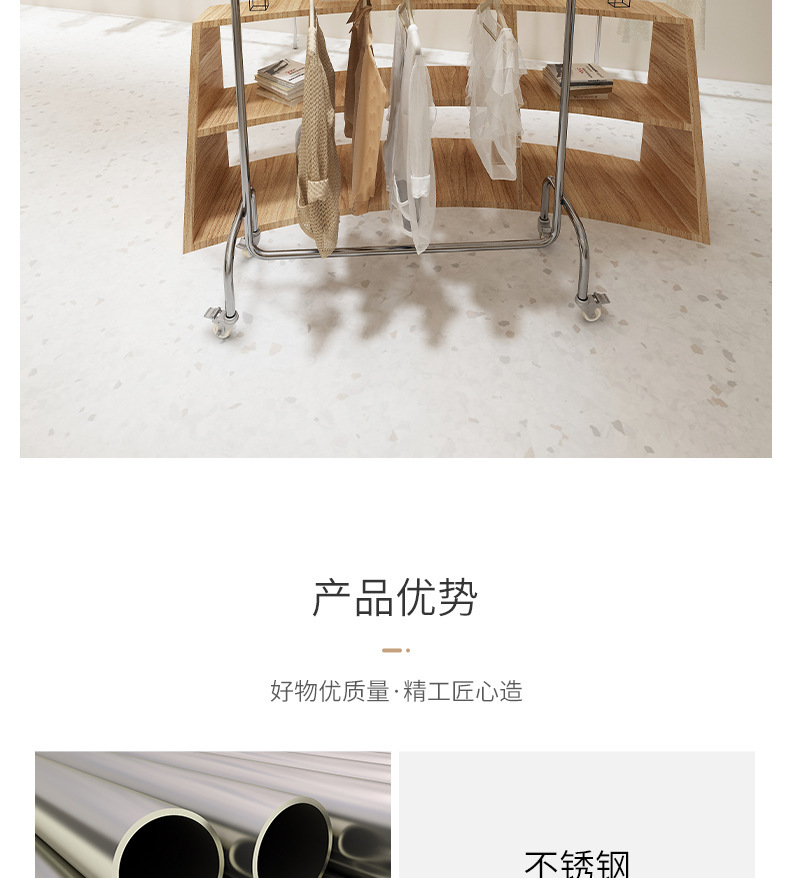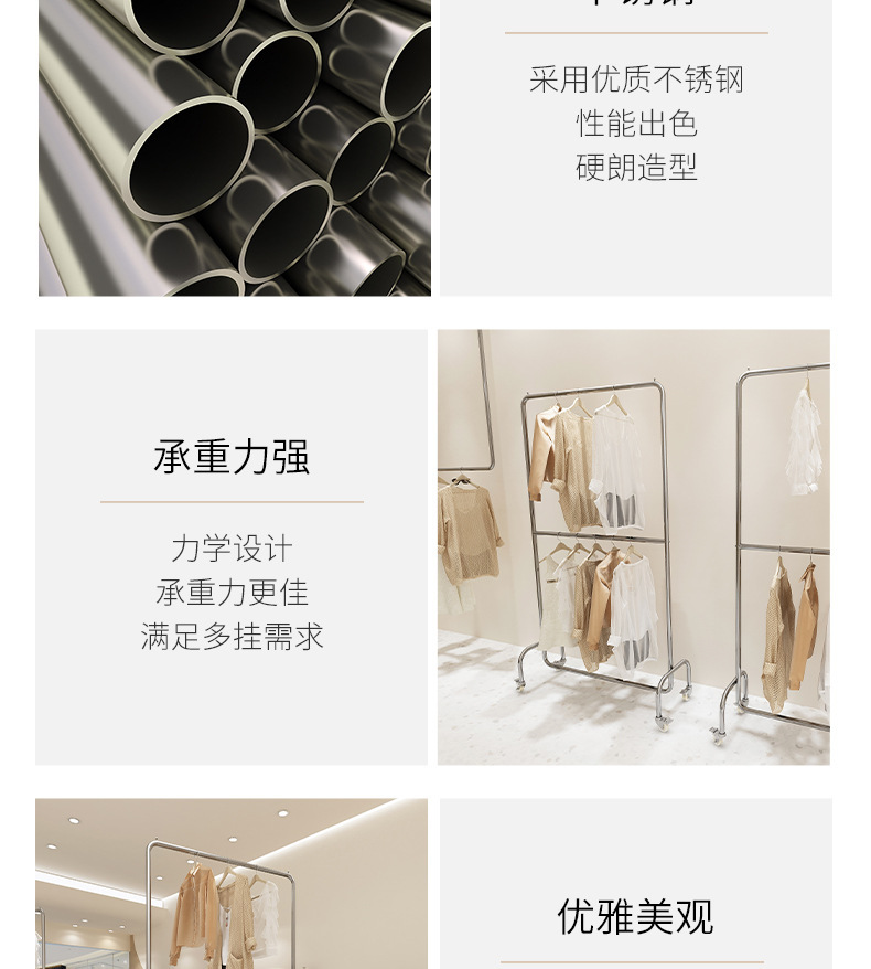 不锈钢双层落地挂衣架服装店展示架可升降调节高度网红女装店货架