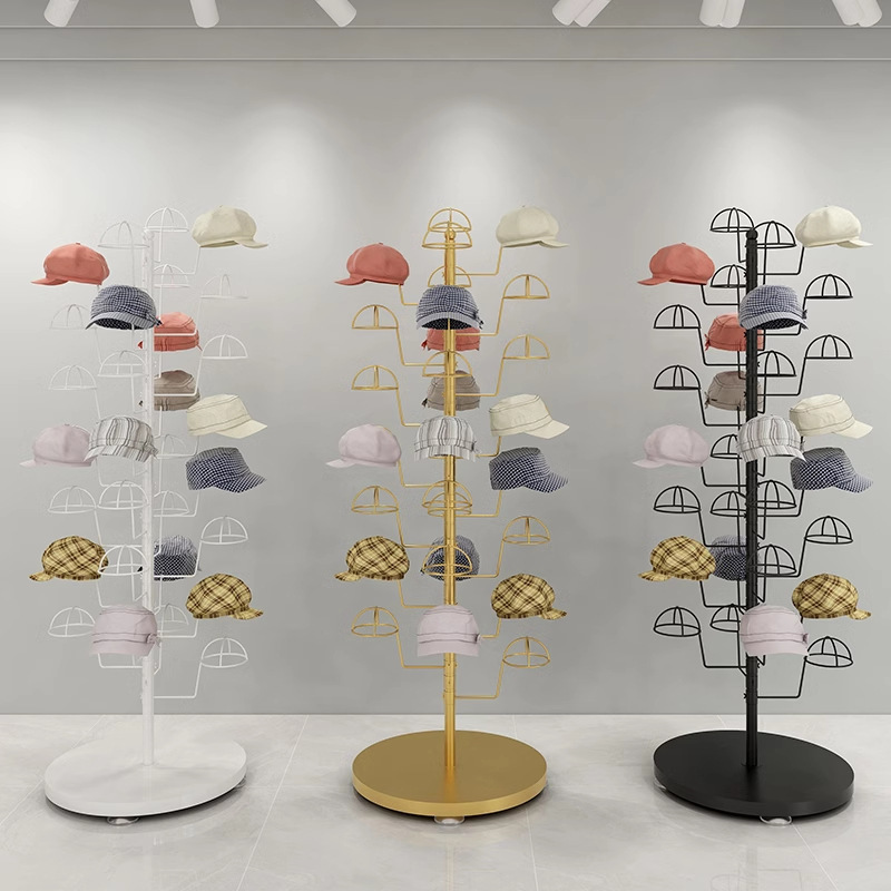 洋服店の太陽帽収納棚の床の帽子棚の母子店の多層帽子掛け棚の展示棚の帽子掛けの移動