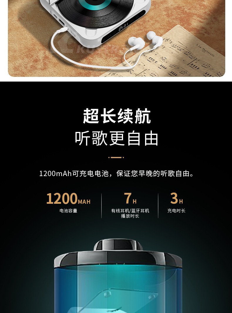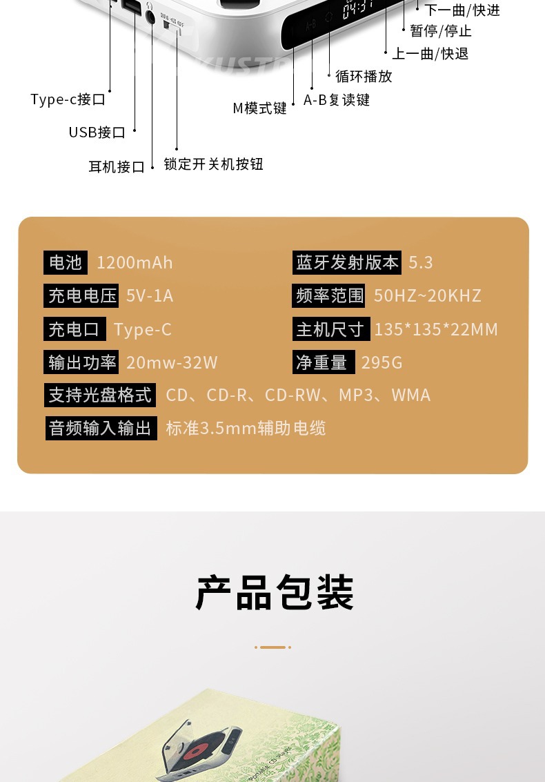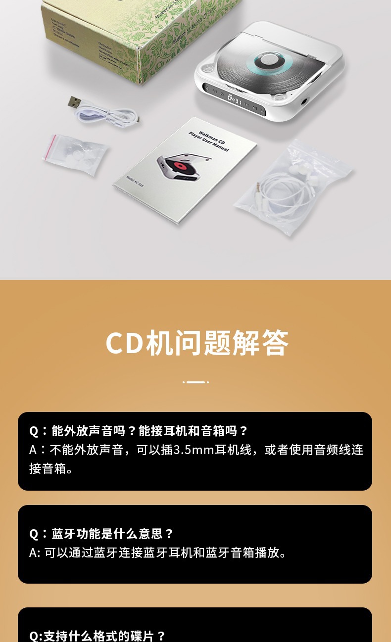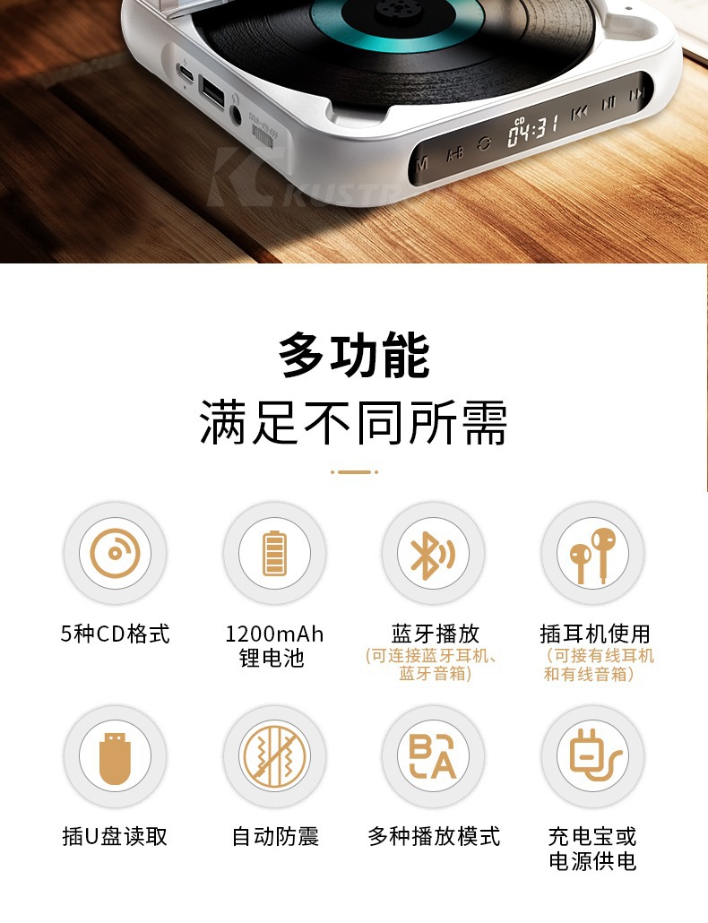 新款充电便携音碟CD机播放机片专辑播放器复古音乐