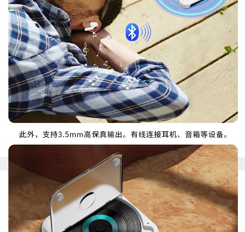 壁掛け式cd機ブルートゥースオーディオ音楽アルバムプレーヤー黒ゴムディスク携帯充電英語スピーカー