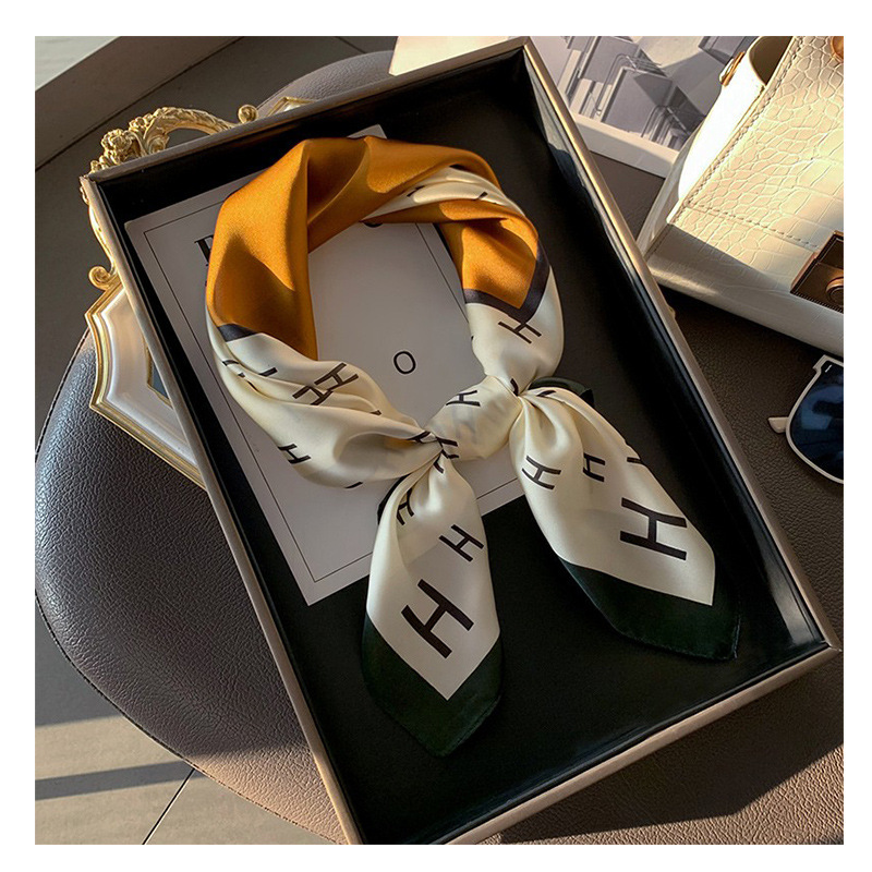 韓国版優雅な名媛マフラー70cmサテンの小さいスカーフのアルファベットhプリントのファッションの小さいスカーフの女性のスカーフの卸売り