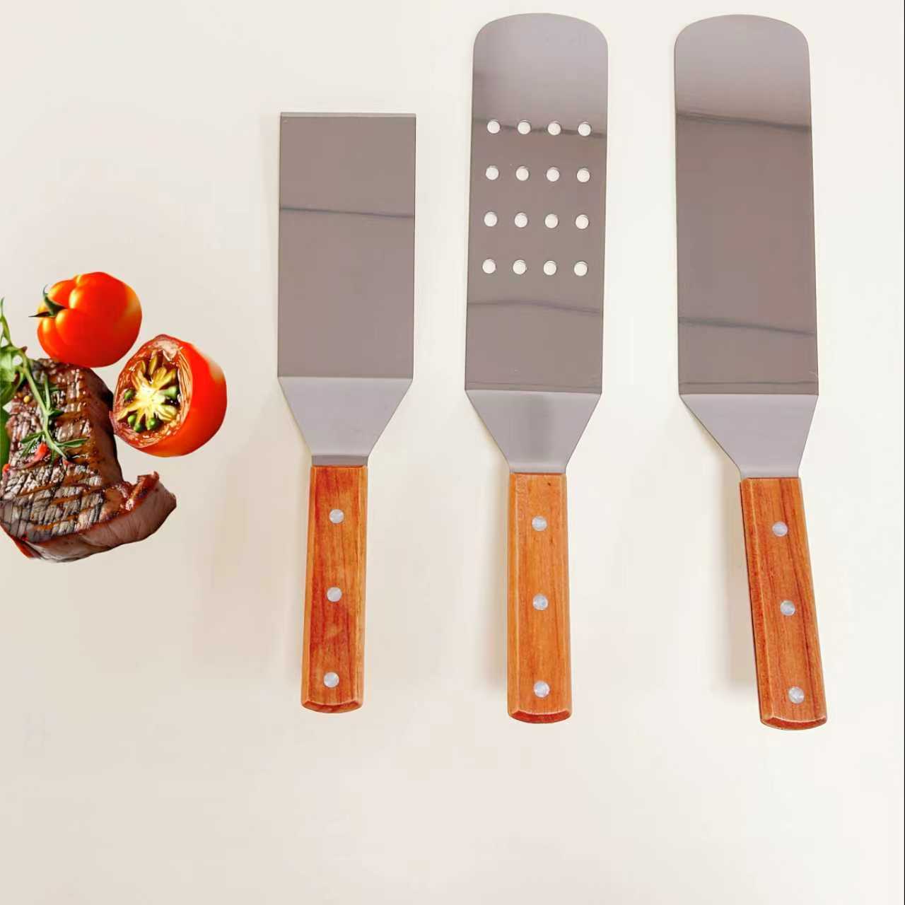 フライヤー調理器具木柄6インチ/8インチステンレス木柄3点セットシャベルステーキ家庭用シャベルカッター