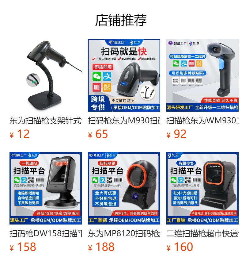 バーコードスキャナーDW158スキャンプラットフォーム二次元コード支払い有線手持ちバーコードスキャナースーパーレジケース